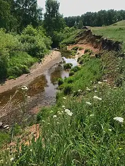 The river originates from the Mount Ak-Cheku between knolls in Dzhilandy and Zerenda mountains. It flows northward along a wide valley. Close to Lake Kopa it bends eastward and flows into the western lakeshore, near the city of Kokshetau. Then it flows out of the northern end of the lake heading roughly northwards. Finally it has its mouth in the southern end of the lake Shaglyteniz.[5][6]