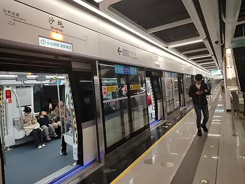 Shahao station (simplified Chinese: 沙蚝; traditional Chinese: 沙蠔; pinyin: Shāháo Zhàn; Jyutping: Saa1 Hou4 Zaam6) is a station on Line 12 of Shenzhen Metro. It opened on 28 December 2024,[1][2] and is located in Shajing Subdistrict in Bao'an District.[3][4]