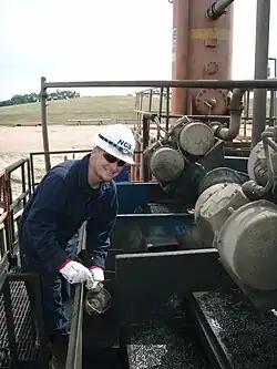 Shale shakers are the primary solids separation tool on a rig. After returning to the surface of the well the used drilling fluid flows directly to the shale shakers where it begins to be processed. Once processed by the shale shakers the drilling fluid is deposited into the mud tanks where other solid control equipment begin to remove the finer solids from it. The solids removed by the shale shaker are discharged out of the discharge port into a separate holding tank where they await further treatment or disposal.