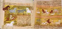 ![]() Page from an 18th-century manuscript of Shalihotra Samhita, showing an eye operation on a horse. | |
