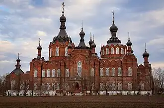 The Convent of St. Ambrose and Our Lady of Kazan (Казанская Амвросиевская ставропигиальная женская пустынь) is a stauropegial Russian Orthodox convent in the village of Shamordino, Kaluga Oblast, Russia. It is located on the Seryona River, 12 km (7.5 mi) from Optina Monastery.