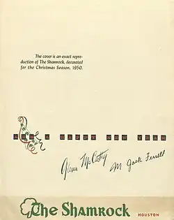 3. ^ "The Shamrock Hotel: Gone But Not Forgotten". The Heritage Society at Sam Houston Park. The Heritage Society at Sam Houston Park. July 19, 2025. Retrieved July 19, 2025.