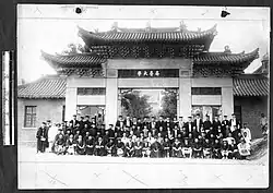 Imperial Shandong University occupied the premises of the Luoyuan Academy which had been renovated and extended significantly five years earlier. It was opened on November 13, 1901, in a ceremony attended by Governor Yuan Shikai.[20] 299 student were enrolled in the first term,[20] of which 120 passed the first examination and 100 were finally admitted.[20] The first faculty had 50 members that also included teachers from overseas,[7] it was later increased to 110. The curriculum contained Chinese classics, Chinese history, social sciences, natural sciences, and foreign language[7] with more than 20 subjects being taught.[7] At the beginning, the curriculum covered 3 years, but it was later expanded to 4 years.[7]