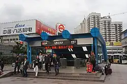 This station served as the northern terminus of Line 1 before the extension to Gongfu Xincun opened on 28 December 2004.