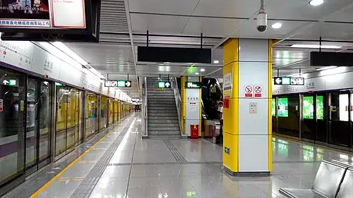 Shangshuijing station (Chinese: 上水径; pinyin: Shàngshuǐjìng Zhàn; lit. 'Upper Water Path station'), is a station of Shenzhen Metro Line 5. It opened on 22 June 2011. It is located at a hillside west to Jihua Road, Buji Sub-district, Longgang District, Shenzhen, China.