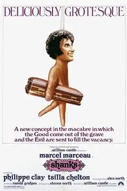 Shanks is a 1974 American surrealist horror film about a puppeteer able to manipulate dead bodies like puppets. Mime Marcel Marceau, in his first major film role, plays the titular Malcolm Shanks. It was the last film directed by producer-director William Castle.