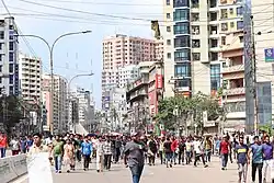 Shantinagar (Bengali: শান্তিনগর) is an upscale neighbourhood[1][2] in Dhaka, the capital of Bangladesh.[3][4] It is under Paltan Thana.[5] Shantinagar is administered by Dhaka South City Corporation.[6] It is one of the busiest areas in Dhaka. Its neighbouring areas are Bailey Road, Siddeshwari, Segunbagicha, Paltan, Rajarbagh, and Kakrail. Numerous shops, pharmacies, restaurants, and salons can be found in Shantinagar.[7][8] Eastern Plus Shopping Complex, which is a well-known place for shopping around the locality, is also located in Shantinagar. The Rajarbagh Police Lines are located near Shantinagar.