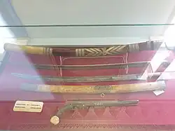 | Scabbard/sheath | wood and leather decorated with brass, gold and silver. |