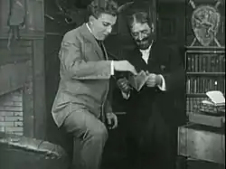 Running at 24 minutes 40 seconds and released on 26 December 1911,[2] She was Thanhouser's first two-reel production. Made quickly in a week, probably in November 1911, the film marked Thanhouser's attempt to depict the epic romance of H. Rider Haggard's tale of love across the centuries. Made on a low budget (the characters arrive off the African coast in a row boat!)[4] the film was made with only a dozen or so actors and extras and cheaply painted scenery. Despite the claim that "The Thanhouser picture of She was made in several different locations, some of them requiring the company to travel 500 miles"[8] in reality a few icy November coastal locations in upstate New York, including Long Island Sound,[7] stand in for the East African coast; and while the production boasts a real camel in the desert scenes the buildings in the distance are clearly not African. In the tomb scene in Part II where James Cruze as Leo Vincey looks upon the dead body of himself as Kallikrates, double exposure photography was used. In the scene where "She" shrinks into the small mis-shapen creature a child or dwarf was used in make-up.[3][7][9]