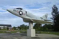 After Naval Air Station South Weymouth closed in 1997, the Patriot Squadron of the Association of Naval Aviation created a historical society to establish a museum.[1] That year the group dedicated the Shea Memorial Grove, named after Lieutenant Commander John J. Shea, consisting of a park with a Douglas A-4B Skyhawk mounted on a pedestal.[2] The museum restored the airplane four years later.[3]