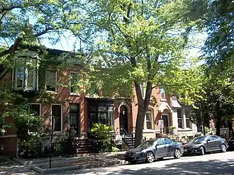 The Sheffield Historic District is a national historic district in the Lincoln Park neighborhood of Chicago, Illinois. The district is primarily a residential area, though it also includes multiple small commercial areas. The area takes its name from Joseph Sheffield, who established an area for farmers to bring livestock and produce to prepare for shipping on Chicago, Rock Island railroad founded by Joseph Sheffield a New Haven, Connecticut resident at the site in the late 1840s. Residential development in the area began in 1868, as European immigrants created a demand for new housing, and continued through the 1900s. The district includes examples of many of the most popular architectural styles of the late nineteenth century, with the Queen Anne and Romanesque Revival styles being especially well-represented.[2]