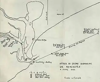 During 1942 and 1943 Imperial Japanese Navy submarines conducted a number of patrols along Australia's east coast.[1] On 16 May 1942 the submarine I-29 attacked the Soviet freighter Wellen 50 miles (80 km) south-east of Newcastle, but did not cause any damage to the ship. In response, a naval force was dispatched from Sydney to attempt to locate the submarine and ships were not permitted to sail between Newcastle and Sydney for 24 hours. On 23 May I-29's floatplane flew over Newcastle and Sydney searching for shipping which could be attacked by midget submarines.[2]