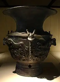 Many of Shen Kuo's contemporaries were interested in antiquarian pursuits of collecting old artworks.[80] They were also interested in archaeological pursuits, although for rather different reasons than why Shen Kuo held an interest in archaeology. While Shen's educated Confucian contemporaries were interested in obtaining ancient relics and antiques in order to revive their use in rituals, Shen was more concerned with how items from archeological finds were originally manufactured and what their functionality would have been, based on empirical evidence.[81] Shen Kuo criticized those in his day who reconstructed ancient ritual objects using only their imagination and not the tangible evidence from archeological digs or finds.[81] Shen also disdained the notion of others that these objects were products of the "sages" or the aristocratic class of antiquity, rightfully crediting the items' manufacture and production to the common working people and artisans of previous eras.[81] Some author writes that Shen Kuo "advocated the use of an interdisciplinary approach to archaeology and practiced such an approach himself through his work in metallurgy, optics, and geometry in the study of ancient measures."[81]