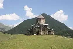 Shenako is one of the few still populated villages in highland Tusheti, but is only accessible by land through a 4WD. The village is overlooked by Mount Diklo and contains a series of buildings of Georgian folk architecture and the old church of the Holy Trinity.[2] built in 1843. Right behind this church there is one of the sanctuaries niche - a relic of pagan beliefs, which subsequently were adapted and became intertwined with Christianity.