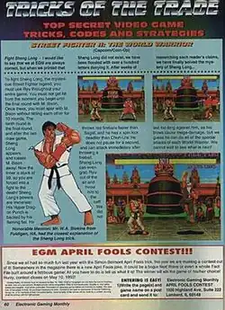 Sheng Long is a character hoax related to the Street Fighter series, created by Electronic Gaming Monthly as an April Fools' prank in 1992. Conceived by editor Ken Williams due to a mistranslation suggesting the existence of a character named Sheng Long in the Capcom fighting game Street Fighter II, the publication released an article describing a method to fight the character in the game. Despite intending it to be an obvious joke, many players took it seriously, and other publications reprinted the details as fact without verifying its legitimacy, causing the Sheng Long hoax to spread worldwide. As a result, the magazine later acknowledged it was indeed a hoax, though revisited the concept for a similar joke in 1997. Claiming Sheng Long would appear in Street Fighter III, they provided a backstory for the character and an appearance designed by editor Mike Vallas. Despite the article trailing off and being incomplete, it resulted in confusion between the North American and Japanese branches of Capcom, with the former calling the latter to ask why they had not been informed about the character.