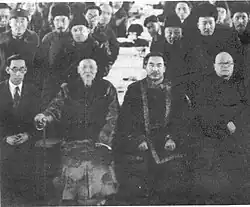 Sheng, who was marshalling the provincial forces in eastern Xinjiang, returned to Ürümqi to seize power in the midst of the chaos. Without conferring the Chinese government, the coup leaders appointed Sheng the Commissioner of the Xinjiang Border Defence,[20] i. e., Military Governor or duban on 14 April 1933,[22] resurrecting the old title.[23] Liu Wenlong, a powerless provincial bureaucrat was installed as the Civil Governor.[20]
