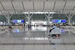 Shenzhen North Railway Station (Chinese: 深圳北站; pinyin: Shēnzhèn Běi Zhàn; Jyutping: sam1 zan3 bak1 zaam6) is one of the four large intercity railway stations of Shenzhen, located in Longhua District.[2] It has 11 platforms and 20 lines. It is an interchange station between the Guangzhou–Shenzhen–Hong Kong Express Rail Link, the Hangzhou–Fuzhou–Shenzhen High-Speed Railway, future Shenzhen–Zhanjiang high-speed railway[3] and the Shenzhen Metro Lines 4, 5 and 6.[4][5][6][7] Construction started in 2007 and was completed in June 2011.[8][9] The Line 4 and Line 5 platforms opened on 22 June 2011, CRH platforms opened on 26 December 2011 and Line 6 platforms opened on 18 August 2020.