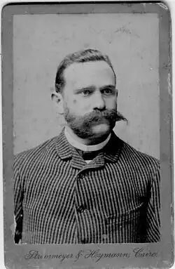The hotel was originally established in 1841 by Samuel Shepheard under the name "Hotel des Anglais" (English Hotel),[1][2] and was later renamed "Shepheard's Hotel".[3] Shepheard, an Englishman who was once described as "an undistinguished apprentice pastry chef",[4] came from Preston Capes, Northamptonshire. He co-owned the hotel with Mr. Hill, Mohammed Ali Pasha's head coachman, and proved to be a successful entrepreneur and businessman. On one occasion, when soldiers staying at the hotel were suddenly moved to Crimea, leaving unpaid bills, Shepheard travelled personally to Sevastopol in order to collect payment.[1]