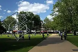 An Inspire Mark (awarded by the London Organising Committee of the Olympic and Paralympic Games (LOCOG), making it part of the Cultural Olympiad) was given to public artworks created by artist Elliott Brook, entitled "Goaloids", which were installed on Shepherd's Bush Green for the duration of London 2012 and the Paralympic Games. These large unique rotating football-related sculptures commemorated the history of Shepherd's Bush and White City, which hosted the 1908 Summer Olympics football.[6] The London Borough of Hammersmith and Fulham is the only borough to have two football teams playing Premier League football.[7]