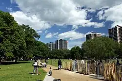 Shepherd's Bush Green (also known as Shepherd's Bush Common) is an approximately 8-acre (3.2 ha) triangular area of open grass surrounded by trees and roads with shops in Shepherd's Bush, an area of west London which takes its name from the Green. The Green is also a ward of the London Borough of Hammersmith and Fulham. The population of the ward at the 2011 Census was 12,175.[1]