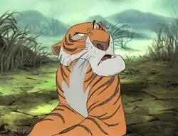 Shere Khan is depicted by Kipling as having been born with a crippled leg, so his mother gave him the derisive nickname "Lungri" ("The Lame One").[3] Despite this condition, Shere Khan is prideful and regards himself as the "rightful" lord of the jungle.[4] The only creature who looks up to him is Tabaqui, a spineless and hated golden jackal.[note 1]