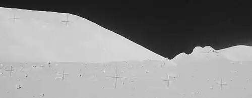 ![]() Location of Sherlock crater in Taurus–Littrow valley. South Massif is at lower left, North Massif is at top center, and Sculptured Hills are at upper right. Scale bar is 5 km | |