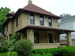 - The Doyle house at 1028 Sherman Avenue was built in 1902, originally hip-roofed with wood siding. In 1928 it was remodeled by Claude and Starck, with broad eaves and stained glass drawn from Prairie Style, and terra cotta trim that is more from Louis Sullivan.[2][13]