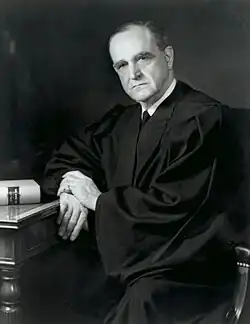 Indiana Senator William E. Jenner led opponents of Minton's nomination, including some of Minton's old foes, in an attempt to bring him before the body for hearings.[2]: 132 Minton wrote a letter to the Senate Judiciary Committee answering several of their questions, but refused to submit himself to a hearing.[20][21] He mentioned his broken leg and hinted in his letter that it could be detrimental to his health to travel in his condition.[3]: 15 He also stated that, as a sitting judge and former member of the Senate, it would be improper for him submit to a hearing.[11] Minton responded to questions over his past support for the 1937 court packing scheme in the letter, declaring that as the Senate leader at the time of his scheme he had a right and duty to support the scheme, but as a federal judge his role had now changed to that of a referee rather than a player.[22] Although hearings had occurred irregularly in the past, it was not customary at that time to have a hearing on a nominee.[23] During an absence of Jenner's, Minton's allies worked to have the hearing request dropped.[3]: 24 The Judiciary Committee held a single hearing on September 27, 1949, on his nomination. His nomination faced intense questioning from Republican Senators on his past support for the failed 1937 court packing scheme.[24][25][26] The Senate Judiciary Committee voted 9–2 on October 3, 1949, to forward his nomination to the full Senate with a favorable report.[3]: 24 [24] On October 4, 1949, Senator Homer S. Ferguson attempted to have the nomination returned to committee but the motion failed, 42–45.[3]: 27 [27] The long debate over Minton's appointment focused on his partisanship, support of the court packing plan during his time in the Senate, and poor health. His opponents launched numerous delaying tactics; the Senate session before the vote to confirm Minton lasted until midnight. His confirmation was approved 48–16 on October 4, 1949,[3]: 27 and he was sworn into office on October 12.[1] To date, Minton remains the last member of Congress, sitting or former, to be appointed to the United States Supreme Court,[3]: 3 and he is the only native of Indiana to be appointed to the court.[2]: 2 [D][E]