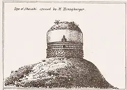 Shewaki Stupa is the site of Shahbahar (King's Vihara), one of Afghanistan’s major Buddhist site. This pre Islamic Buddhist stupa was built during the Kushan period between the 1st and 3rd centuries CE. ‘Shiva’, the popular deity among Hindu worshippers most presumably got its name from here as a Shiva Lingam. [1] In 2022, the reconstruction of Shewaki Stupa was completed. The restoration work took two and a half years and cost more than $80,000.[2]