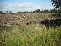 The Caledonian Pulp Mill is located on the western margin of Shewalton Moss. It was opened in 1989 by Prince Philip, Duke of Edinburgh. The factory produces glossy paper for magazines and other publications, using china clay brought in by train from Cornwall.[32] After Shewalton House was demolished a ball bearing factory was built nearby and the industrial estate also built here occupies part of the old estate's deer park.[32]