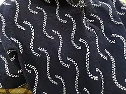One of the earliest written descriptions of shibori dates to 238 CE, where it was recorded in the of the Chinese document Treatise on the Wa People that Queen Himiko gifted the emperor of Cao Wei over 200 yards (180 m) of "spotted cloth" – potentially describing a form of wax-resist decoration on the fabric.[1]