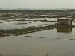 Further downstream, the Shijing River's estuary (the Anhai Bay) continues to exist. It is an important aquaculture area. As of ca. 2001, 138.5 hectares of the mudflats and water surface on the bay's western (Shuitou) side were used for aquaculture; this included 37.5 ha used for raising the blood cockles (Tegillarca granosa, 泥蚶), 58.3 ha used for the Chinese razor clam (Sinonovacula constricta, 缢蛏), 16.2 ha used for oyster farming, and 26.5 ha used for shrimp farming. Over 1400 people from Shuitou's Gangnei Village (巷内村) were employed in aquaculture and fishing.[2]