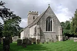 The earliest parts of the Church of England parish church of the Holy Rood are the Norman nave, south aisle and arcade, all of which were built in about 1150.[9] The present Early English Gothic chancel was built in about 1250.[10] The bell tower was added in the 15th century.[10] The present side windows of the nave and aisle are also late Medieval Perpendicular Gothic additions.[10] The Gothic Revival architect C.C. Rolfe restored the building in 1884–88, adding the present rood screen.[10] The church is a Grade II* listed building.[11] Holy Rood church tower has three bells, all cast in 1854 by W. & J. Taylor[12] of Loughborough, who at the time also had a bell-foundry in Oxford.[13] Currently for technical reasons they are unringable.[12] Holy Rood also has a Sanctus bell that Henry III Bagley cast in 1730.[12] Bagley was from Chacombe, Northamptonshire but also had a foundry at Witney.[13] Holy Rood parish is now part of the Benefice of Shill Valley and Broadshire.[14]