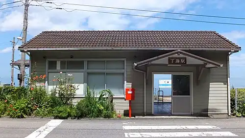 Shimonada Station (下灘駅, Shimonada-eki) is a passenger railway station located in the city of Iyo, Ehime Prefecture, Japan. It is operated by JR Shikoku and has the station number "S09".[1][2]