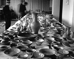 It has been excavated during several maritime archaeological expeditions from 1976 to 1984. Its excavation has been described as "the first underwater excavation" in South Korea leading to "the advent of underwater archaeology in the history of Korean archaeology". Much of the ship's cargo survived mostly intact, and due to the overwhelming amount of Chinese treasures contained in the ship (over 28 tons of Chinese coins and over 20,000 pieces of Chinese ceramics), in the early 1990s the shipwreck was also described as possibly "the richest ancient shipwreck yet discovered".[3]