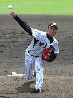 Shinobu Fukuhara (福原 忍, Fukuhara Shinobu; born December 28, 1976, in Miyoshi, Hiroshima, Japan) is a retired Japanese baseball pitcher for the Hanshin Tigers. He was the number three draft pick for the Hanshin Tigers in 1999.