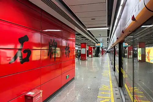 Shipaiqiao Station (simplified Chinese: 石牌桥站; traditional Chinese: 石牌橋站; Cantonese Yale: Sehk pàaih kìuh Jaahm) is a station of Line 3 of the Guangzhou Metro. It started operations on 30 December 2006. It is located in Tianhe District, underneath Tianhe Road[1] between East Tianhe Road[2] and East Tiyu Road.[3][4]