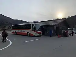 As a result, the village moved ahead with the establishment of a new bus station on the site formerly home to the Shirakawa Clinic.[5] An ordinance outlining the requirements for the station's management was completed on 21 June 2016, titled Ordinance on the Establishment and Management of the Shirakawa-gō Bus Terminal. A ceremony was held on 29 September 2016 marking the station's completion, and it opened for operation on 1 October 2016. The bus stop in the Seseragi Park parking lot and the nearby Ogimachi bus stop were removed as the station was opened.[6]