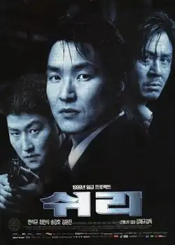 Shiri (Korean: 쉬리; RR: Swiri) is a 1999 South Korean action spy film, written and directed by Kang Je-gyu. It was the first Hollywood-style big-budget blockbuster to be produced in the new Korean film industry (i.e. after Korea's major economic boom in the late 1990s).[1] Created as a deliberate homage to the "high-octane" action film made popular by Hollywood through the 1980s, it also contained a story that draws on strong Korean national sentiment to fuel its drama.[1] Much of the film's visual style is shared with that of Asian action cinema, particularly Hong Kong action cinema such as John Woo, Tsui Hark, Ringo Lam, and the relentless pace of the second unit directors, like Vic Armstrong and Guy Hamilton, in the James Bond films.[2]