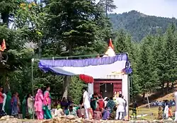 The shrine of Goddess Shiva Bhagwati is situated at the top of the village near the foothills of a big forest full of Devdar trees and pastures. The temple is at a distance of about 250 meters from main chowk Akingam and 100 meters from G H S S Akingam.