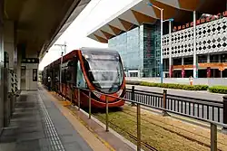 Shizishan Station (Chinese: 狮子山站)[1] is a station of Line 1 & Line 3 of the Suzhou Metro. The station is located in Suzhou New District of Suzhou. The station was formerly named Suzhou Amusement Land Station (Chinese: 苏州乐园站) but was renamed due to the closure of the amusement park. It has been in use since April 28, 2012, the same time of the operation of Line 1.[2] The platforms for Line 3 were opened in December.