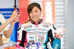 Shizuka Okazaki (岡崎 静夏, Okazaki Shizuka; born 12 June 1992)[1] is a Japanese motorcycle racer. In 2016, she became the first Japanese female rider to compete in a Grand Prix in 21 years.[2] She currently competes aboard a TSR3 Honda in the MFJ All-Japan Road Race J-GP3 Championship.
