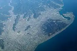 The fan-like shape of the Shizuoka Plain and Miho Peninsula were formed over the ages by the fast-flowing Abe River, carrying along collapsed sand and earth. These areas form the foundations of the city today.[7]: 242 The isolated Mount Kunō separates the Suruga coastline from the Shimizu coastline.