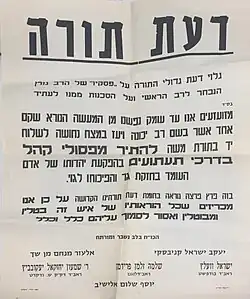 Goren's reversal was fiercely opposed, primarily by the Agudat Yisrael and Rav Ovadiah Yosef.[14] Some prominent rabbis, however, such as Rav Soloveitchik and Rav Yosef Eliahu Henkin, came out in support of Goren.[15] The controversy severely affected Goren's reputation.[14]