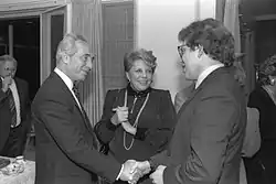 Mintz is married to Corina, who grew up in Italy and Germany, and worked as an interpreter specializing in art.[4] They have two sons, Eliav and Alexander.[5] Shlomo owned a villa in Italy and a castle in Germany but he primarily raised his family in an unpretentious, contemporary ranch in Sands Point, New York.[5] With over 150 concerts a year, Mintz regrets not having enough time to spend with this children due to his hectic performance schedule and wished he could have spent more time “shooting nintendo with Eliav”.[5] His children are also musically inclined, and Eliav picked up piano and viola at a young age. Although Shlomo was not around often, his wife says “it's very special when daddy’s home”.[5]