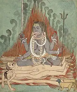 In Tantra, the shmashana emerged to be a primary concept of spiritual practices called Shava sadhana.[2][3] Aghoris and Kapalika are some sects that perform rituals in the shmashana. They invoke Kali, Tara, Yogini, Dakini, Bhairava, Bhairavi, and beings like Vetala, Pishacha, Brahmarakshasha and worship these entities as the shmashana adhipati. They offer them sacrifices in the shmashana with the belief of obtaining occult powers.