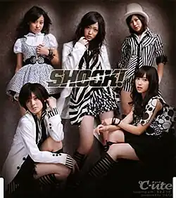 "Shock!" (stylized as "SHOCK!") is the eleventh major single by Japanese idol pop group Cute. It was released on January 6, 2010, in both normal and limited editions,[2] the limited edition containing a DVD with a version of the "Shock!" PV on it and coming with a different cover.[3] The first press of each edition also contained a card with a serial number on it, used in an event draw to promote the single's release. This was the first single to be released after Erika Umeda's graduation, which also makes it the first single not to feature her. Airi Suzuki is "centred" in this single, taking on the main vocals. The single peaked at #1 on the Oricon daily charts, and #5 on the weekly charts.[4] The single also reached #13 on the monthly chart for January, with a reported total of 23,389 copies sold.
