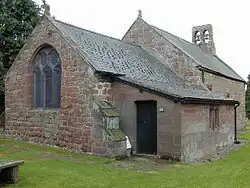 Today, standing in the middle of fields on its own, overlooking the River Dee and Wales, the 12th-century St Edith's Church is a Grade I listed building, situated one mile outside the village of Shocklach.[15] The church has a beautiful Norman doorway but the level of the ground outside is higher than the base of the door.[15]