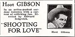 Shootin' for Love is a 1923 American silent Western film directed by Edward Sedgwick and featuring Hoot Gibson.[1] Gibson plays a World War I veteran suffering from shell shock who at his father's ranch becomes involved in a dispute over water rights that leads to gunfire.[2][3] The British Board of Film Censors, under its then-current guidelines, banned the film in 1923.[1][4]