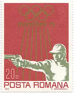 ![]() Romanian stamp commemorating shooting at the 1972 Summer Olympics | ||||||||||